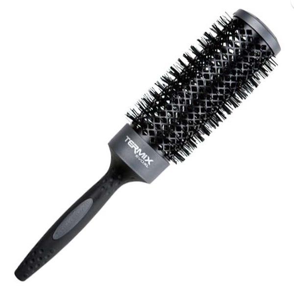 Vrhunska četka Termix Plus za feniranje jako guste, neposlušne i kovrčave kose. Sve Evolution četke imaju otvore u obliku dijamanta koji povećavaju veličinu cijevi što rezultira smanjenjem vremena za sušenje kose za 30%. Zbog svog posebnog premaza PTFE, posjeduje veliku otpornost na temperaturu i do 300ºC! Dizajnirana da odbija nečistoću (ostaci od gela, spreja,.. se ne lijepe na četku) i da sprječava lomljenje, uništavanje kose. Zahvaljujući nježnoj kombinaciji vlakana, gustoći ionizirajućih čekinja savršena je za lakše upravljanje i kontrolu guste kose. Teflon četka povećava sjaj, ima maksimalan otpor protiv kemikalija i bolje zadržava toplinu. Rezultati korištenja: kosa zdravijeg izgleda, kontrola kose, glatka kosa, efektan i sjajan učinak. Ergonomski i neklizajući dizajn drške sa gumenom teksturom olakšava korištenje, čak i pri dugotrajnoj profesionalnoj upotrebi. Promjer: 37 mm.